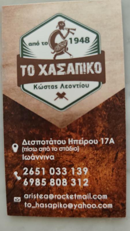 Το Χασάπικο Κρεοπωλείο Ιωάννινα  Εάν ψάχνετε για κρέατα υψηλής ποιότητας σε οικονομικές τιμές, δεν έχετε παρά να επισκεφτείτε το κρεοπωλείο μας “Το Χασάπικο” το οποίο βρίσκεται στα Ιωάννινα και εδώ και αρκετά χρόνια είναι καθημερινά δίπλα σας με στόχο να φέρνει πάντα στο τραπέζι σας τα καλύτερα και ποιοτικότερα κρέατα. Καθημερινά στο κρεοπωλείο μας στα Ιωάννινα θα βρείτε όλων των ειδών τα κρέατα όπως μοσχαρίσιο και χοιρινό, αμνοερίφια, κοτόπουλα και πολλά ακόμα. Ακόμα, σε...
